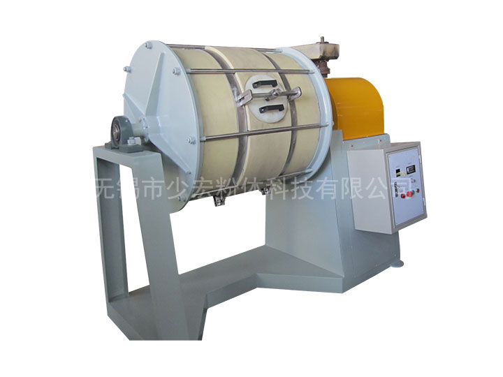 球磨機由給料部、出料部、回轉(zhuǎn)部、傳動部(減速機,小傳動齒輪,電機,電控)等主要部分組成。中空軸采用鑄鋼件,內(nèi)襯可拆換,回轉(zhuǎn)大齒輪采用鑄件滾齒加工,筒體里面鑲有耐磨襯板,具有良好的耐磨性。本機運轉(zhuǎn)平穩(wěn),工作穩(wěn)固。